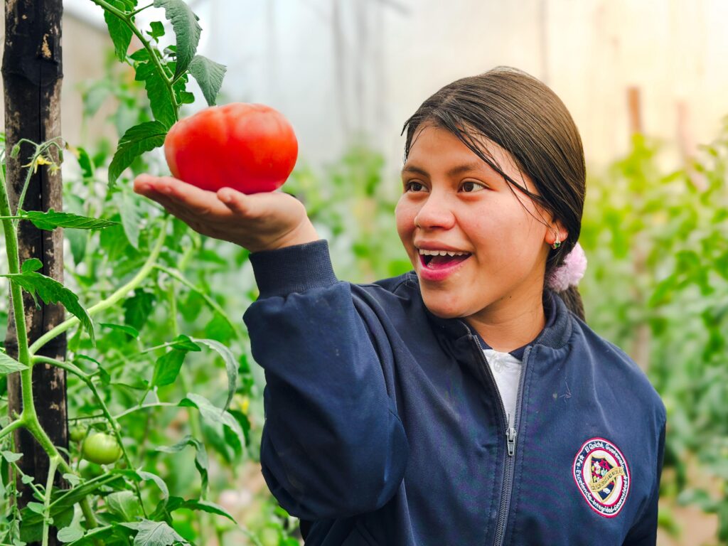 Students can take an elective class that combines theory and practical learning in agriculture and crop production. The lessons are guided by Agros employee Guillermo Chop Molina, who teaches theory, while students use digital coursework on their tablets. They also practice their skills in seven greenhouses located on the school campus. These greenhouses provide a pest- and disease-free environment for growing crops.