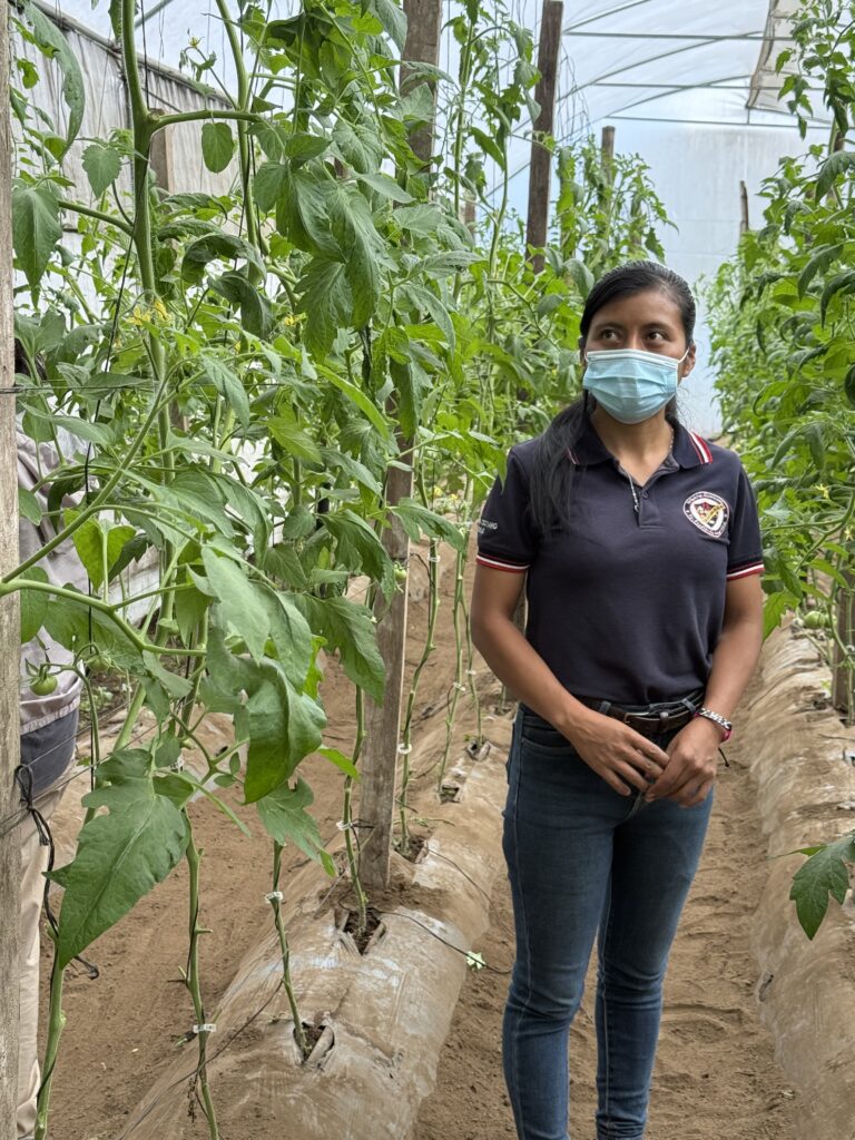 Ana Cordova Cedillo, the teacher in charge of the greenhouses, says she loves teaching agronomy. Ana herself was once ranked as the top snow pea farmer in the Ixil region. She shared that greenhouses are now being used in the village of San Felipe Chenla, expanding the impact of greenhouse farming as an accepted practice in the community.